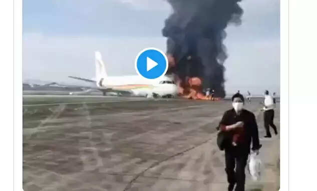 ஓடுதளத்தில் சென்றபோது தீப்பற்றி எரிந்த விமானம்.. அலறிய பயணிகள்- பகீர் வீடியோ !!