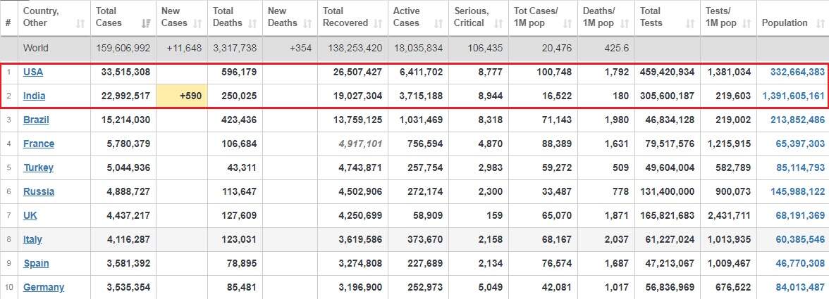 சீனாவில் இருந்து பரவிய கொரோனா வைரஸ் இப்போது உலக நாடுகளை ஆட்டிபடைத்து வருகிறது. உலக நாடுகளில் அதிகம் பாதிக்கப்பட்டோர் மற்றும் உயிரிழப்பில் முதலில் உள்ள நாடு அமெரிக்கா. எனினும் தற்போது அங்கு இந்தியாவை விட ஒருநாள் பாதிப்பு குறைந்து வருகிறது.