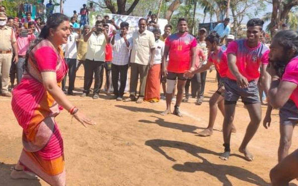 நடிகையும் ஆந்திர மாநில எம்எல்ஏவுமான ரோஜா கபடி விளையாடி அனைவரையும் வியப்படையச் செய்தார்.