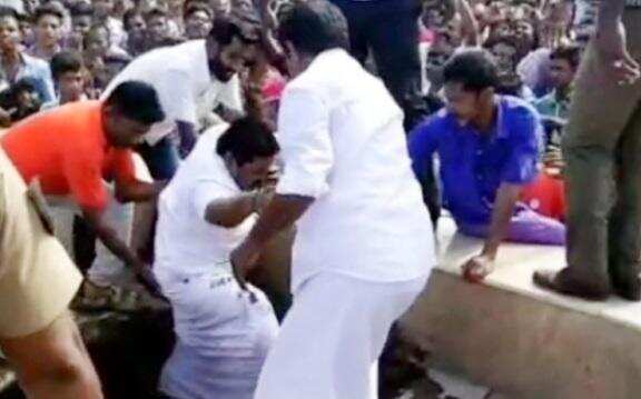 சாக்கடைக்குள் விழுந்த அதிமுக நிர்வாகிகள் - அமைச்சர் நிகழ்ச்சியில் கூட பாதுகாப்பில்லை