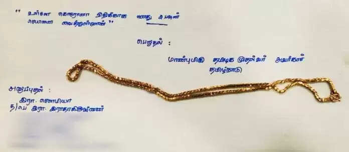 அப்போது, சௌமியா என்பவர் அளித்த கடிதத்தில், “என்னிடம் பணம் இல்லாததால் கொரோனா நிதியாக எனது கழுத்திலிருந்த 2 பவுன் செயினை கொடுக்க விரும்புகிறேன். நான் பி.இ கம்ப்யூட்டர் சயின்ஸ் பட்டதாரி. எனது தந்தை பணி ஓய்வு பெற்ற சில மாதங்களில் என் அம்மாவுக்கு நிமோனியா காய்ச்சல் ஏற்பட்டு நுரையீரல் பழுதடைந்து இறந்துவிட்டார்.