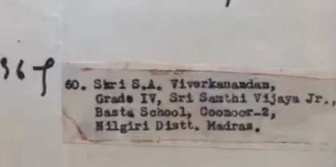 இந்த நிலையில் நடிகர் விவேக் மறைவுக்கு பிறகு அவர் 2ஆம் வகுப்பு படிக்கும் போது செய்த செயல் ஒன்று தற்போது புகைப்படத்துடன் வைரலாகி வருகிறது. அதாவது, கடந்த 1969ஆம் ஆண்டு நீலகிரி மாவட்டம் குன்னூர் ஓட்டுப்பட்டறையில் உள்ள சாந்தி விஜய் பள்ளியில் விவேக் இரண்டாம் வகுப்பு படித்துக்கொண்டிருந்தார். அப்போது, இந்திரா காந்திக்கும் விவேக்கிற்கும் ஓரே நாள் பிறந்த தினம் எனறு விவேக்கிற்கு அவரது தந்தை கூறியுள்ளார்.