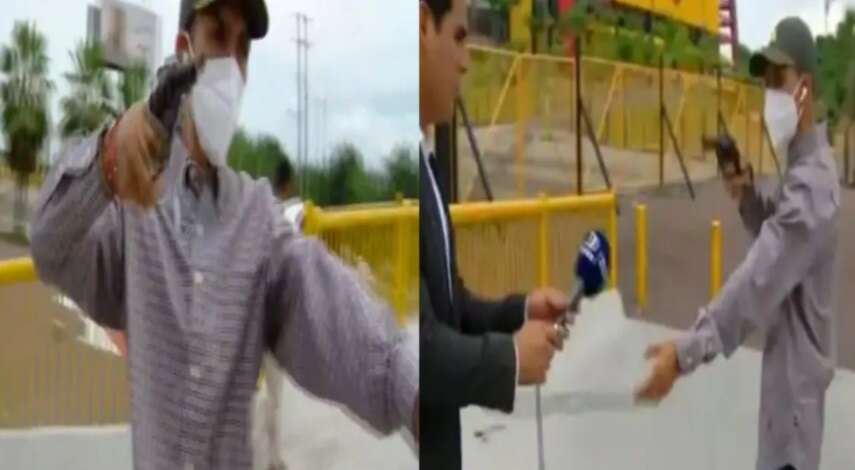 தென் அமெரிக்காவின் ஈக்வடார் பகுதியில் கடந்த 19ஆம் தேதி தனியார் செய்தி ஊடகத்தின் செய்தியாளர் ஒருவர் விறுவிறுப்பாக நேரலை செய்துக்கொண்டிருந்தார். அப்போது செய்தியாளரை நெருங்கிய இளைஞர் ஒருவர் திடீரென துப்பாக்கியை எடுத்து மிரட்டினார்.
