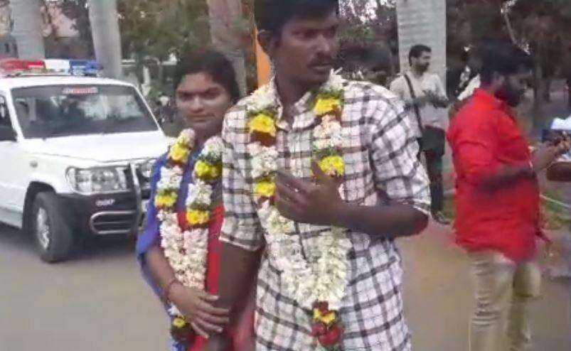 இந்த நிலையில் வீட்டில் இருந்து தப்பிச்சென்ற வினிதா கோவை காந்திபுரத்தில் உள்ள பெரியார் படிப்பகத்தில் முத்துக்குமாரை கலப்பு திருமணம் செய்து கொண்டார். இதையறிந்த வினிதாவின் உறவினர்கள் மிரட்டல் விடுப்பதாக கூறி காதல் ஜோடி காவல் ஆணையர் அலுவலகத்தில் தஞ்சம் அடைந்து மனு அளித்தனர். இதனிடையே மகளை காணவில்லை என பெண்ணின் பெற்றோர் அளித்த புகாரின் அடிப்படையில் சங்ககிரி போலிசார் காவல் ஆணையர் அலுவலகம் வந்தனர்.