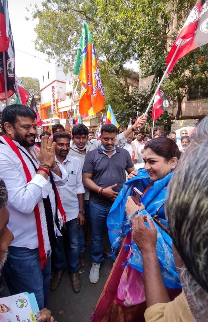 தமிழகத்தில் ஏப்ரல் 6ம் தேதி சட்டமன்ற தேர்தல் நடைபெற இருக்கிறது . இதனையடுத்து அனைத்துக் கட்சிகளும் தீவிர பிரச்சாரத்தில் ஈடுபட்டு வருகின்றன. வேட்பாளர்கள் மனுத்தாக்கல் செய்து வருகின்றனர். அந்த வகையில் அ.தி.மு.க. கூட்டணியில் சென்னை ஆயிரம் விளக்கு தொகுதியில் பா.ஜ.க. வேட்பாளராக நடிகை குஷ்பு களமிறக்கப்படுகிறார். நுங்கம்பாக்கம் மண்டல அலுவலகத்தில் குஷ்பு வேட்புமனு தாக்கல் செய்த பின் ஊர்வலமாக வந்து செய்தியாளர்களிடம் குஷ்பு பேசியுள்ளார்.