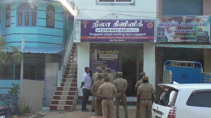 தூத்துக்குடி மாவட்டம் ஏரல் கிராமத்தை சேர்ந்த ராஜலட்சுமி என்பவர் தொண்டியில் நிலா கிளினிக்கை நடத்தி வந்தார். சில நாட்களுக்கு முன்பு தொண்டியில் உள்ள கிளினிக்கில் அளித்த தவறான சிகிச்சையில் 60 வயதான மூதாட்டி உயிரிழந்தார். இதையடுத்து உறவினர்கள் கிளினிக்கை முற்றுகையிட்டதால், ராஜலட்சுமி தலைமறைவானார். அதனைத் தொடர்ந்து பொதுமக்கள் காவல் நிலையத்தில் புகார் அளித்தனர்.