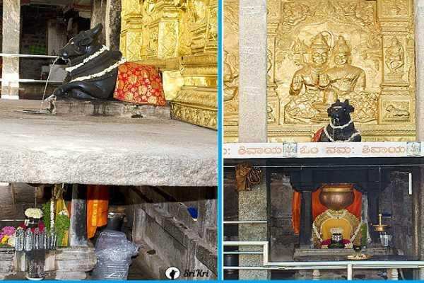 சிவாலயங்களில் சிவனுக்கு எதிரில் தான் பொதுவாக நந்தி பகவானை உருவாக்கியிருப்பார்கள். ஆனால் இந்த கோவிலில் சிவனின் தலைக்கு மேல் நந்தியை வைத்திருக்கிறார்கள். இதில் சிறப்பம்சமே நந்திபகவானின் வாயிலிருந்து வழியும் நீர் சிவனின் மீது தத்ரூபமாக விழும்படி வடிவமைக்கப்பட்டு சிவனை குளிர்வித்தப்படி இருக்கும்படி கனக்கச்சிதமாக அமைக்கப்பட்டிருப்பதுதான்.