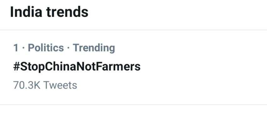 இந்திய அளவில் ட்ரெண்டாகும் #StopChinanotfarmers ஹேஷ்டேக்!